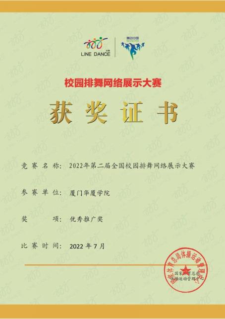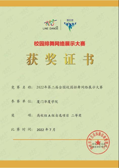 近日,由国家体育总局体操运动管理中心主办、中国蹦床与技巧协会排舞分会承办的2022年第二届全国校园排舞网络展示大赛在线上举行。比赛共吸引了来自全国20个省共254支队伍,其中高校队伍120支,近5万余学生参与。经过三天激烈的角逐,我校排舞代表队获得高校A组自选项目二等奖和优秀推广奖。