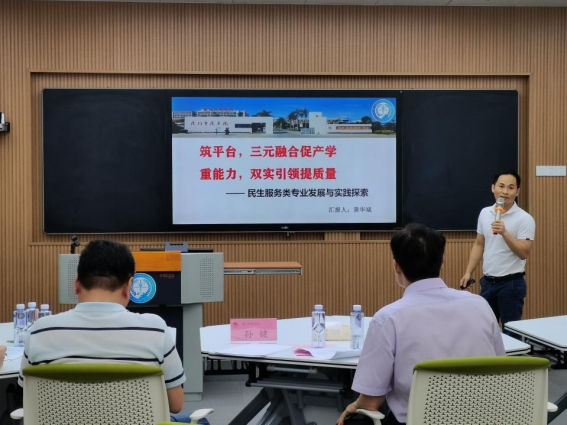 环境与公共健康学院院长黄华斌围绕“三元融合,双实引领”民生服务类应用型人才专业与创新创业就业能力培养模式进行汇报。报告立足学校应用型人才培养定位,紧扣“民生服务产业需求”,紧跟国家“大众创业万众创新”的发展战略,紧抓“平台、专业与企业”三方资源,以实岗实务为引领,培养学生的专业应用及创新创业能力,以产学合作促就业,以科教一体守初心。