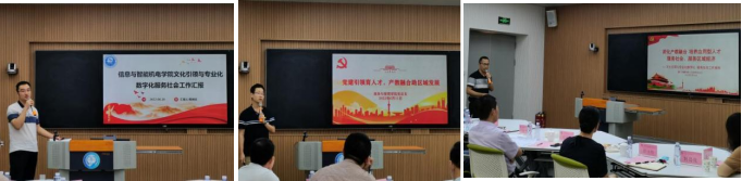 信息与智能机电学院党总支书记陈博文、商务与管理学院党总支书记李葳葳、人文学院党总支书记王德华围绕“文化引领与专业化数字化服务社会”分别进行主题发言,介绍了各党总支党建引领融合发展,专业服务产业创新、文化育人塑造品格等方面的情况。