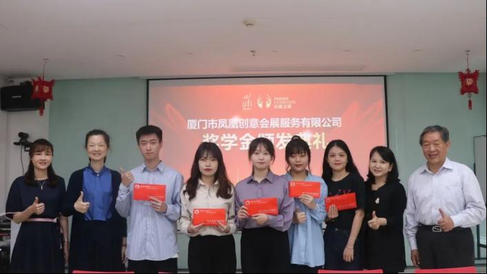 “凤凰会展奖学金”是厦门市凤凰创意会展服务有限公司于2019年在厦门市教育基金会捐资设立的奖项,每年从厦门市各高校遴选10名优秀的会展专业学生,每名学生奖励5000元,鼓励其学习新知识、研究真学问、解决真问题,在会展之路上奋勇前行,助力其成长成才,从而为企业与行业发展注入源源不断的新鲜血液。截止第三届奖学金颁发,我校已有16名会展专业优秀学生获此奖励,今年获奖的5名同学分别是来自会展经济与管理专业的郑晨辰、叶婧微、陈祥瑞、林镕、黄思凌。