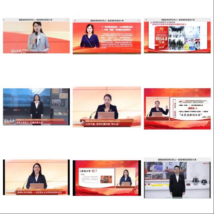 在本次活动中,来自厦门大学、福州大学、福建农林大学、福建中医药大学、闽江学院的5名学者紧密结合思想政治理论课,讲述我省抗疫一线的感人故事,解读党中央关于疫情防控的决策部署,教育引导广大师生深刻认识中国特色社会主义制度的显著优势,牢记“两个确立”,增强“四个意识”,坚定“四个自信”,做到“两个维护”。同时,中国社科院马克思主义研究院、华南师范大学马克思主义学院、中央财经大学马克思主义学院等3名专家学者对本次活动进行简评并对师生提出的问题进行回答。