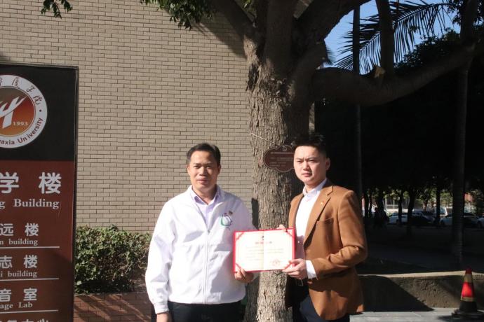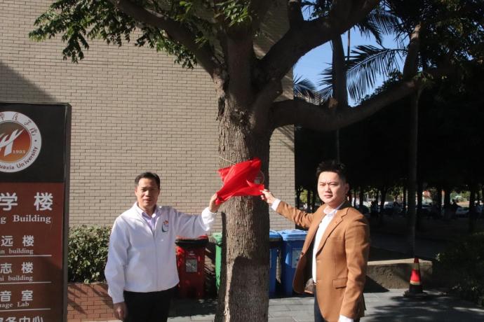 2021年12月7日下午,37000v威尼斯校友认捐树木揭牌仪式顺利举行,党委书记、校友总会副理事长徐志怀,党委委员、副校长、厦门市华厦教育基金会理事长赵丽,校长助理、学工部部长陈熙贞,树木认捐(认养)校友代表学校校友总会理事、2014届金融与证券专业林智敏校友,2018届机电一体化技术专业蔡明亮校友及相关部门负责人共同参加揭牌仪式。