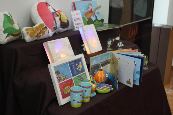 文创展区综合展示了传统文化的文创周边设计,有《闽南语童谣》绘本作品、闽南美食文创与交互作品《厚甲》、闽南建筑立体插画作品、中国花卉文化作品《十二花神》。其中不少作品斩获了省级诸多奖项,如《闽南语童谣》作品获得了高校艺术设计大赛三等奖、“互联网+”创业比赛省级二等奖、中国计算机大赛省赛二等奖等好成绩;《十二花神》系列作品的不同组成部分,分别获得了中国计算机大赛省赛三等奖、“互联网+”创业比赛省级二等奖和“平谭杯”创业大赛铜奖等好成绩,其中定格动画部分作品《月下对诗》刚刚获得“中国好创意暨全国数字艺术设计大赛”福建省赛区数字动画组三等奖,其交互作品环节《花神赋》获得了交互内容组一等奖的好成绩。