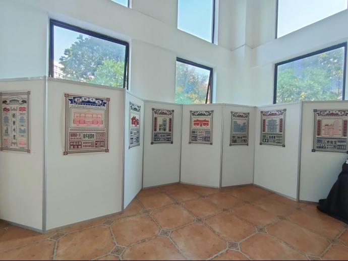 海报展品区作品“梧林外传”以福建泉州晋江市梧林村的传统建筑为灵感来源,提炼、融合了梧林传统建筑的特色元素,并将其运用到海报创作中。基础建筑海报的设计创意性在于:以建筑为海报主体,辅以突出特点的文字说明,画面中央的方框长条灵感来源于梧林以砖块为特色的建筑构造, 周围由闽南传统的花窗图形排列组合而成,设计出类似旧报纸的形式。