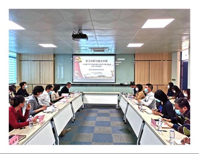 为认真贯彻落实党中央关于深入开展党史学习教育的部署要求,扎实推动“再学习、再调研、再落实”活动走深走实,推行数字素养教育主动融入数字文明新时代,全面总结展示基层党组织党建工作建设成效,着力破解党建“上热中温下冷”问题。2021年11月9日下午,“学习诊断与融合创新”党建工作与党建品牌示范提升及数字素养培养工作推进会(信息与智能机电学院专场)于我校大音楼407会议室顺利召开,学校党委徐志怀书记,全体党委委员、党办主任、党委各工作部负责人、各党总支书记、各学院支部书记代表、信息与智能机电学院教师代表等出席本次会议。会议由校党委委员、宣传部部长孙键老师主持。