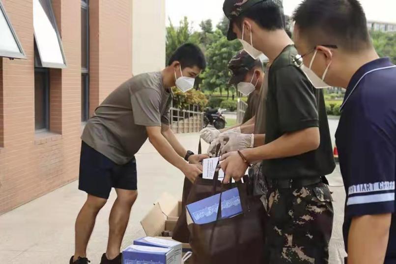 为助力全校抗击疫情工作,院团总支、学生会组织团员志愿服务队,早9:00至晚9:00,在酷暑高温下帮助培训楼学生搬迁宿舍,不叫苦不喊累。院学生会积极响应学校号召,主动参与公寓区志愿分餐服务,做好楼栋分餐值班,保证每位同学都能吃上学校食堂的放心餐点;在代领快递摊点,总会活跃着一批人文学院志愿者的身影。校园每轮核酸检测志愿工作中,人文学院学生积极投身志愿服务中,身穿红马甲、带上N95口罩,搬运物资、布置现场,为全员核酸检测做好充足准备。人文学院学生会主席、入党积极分子、19级数字媒体艺术专业的陈莉金同学是一名退役复学学生,与学院其他6名退役复学学生履行“若有战,召必回”的誓言,积极投身志愿服务活动,主要负责信息采集、搬运物资以及核酸检测期间秩序维持等工作。在没有硝烟的战场上,他们继续发扬“听党指挥,能打胜仗,作风优良”的人民子弟兵优良传统。他们在实践中学党史、强信念跟党走。