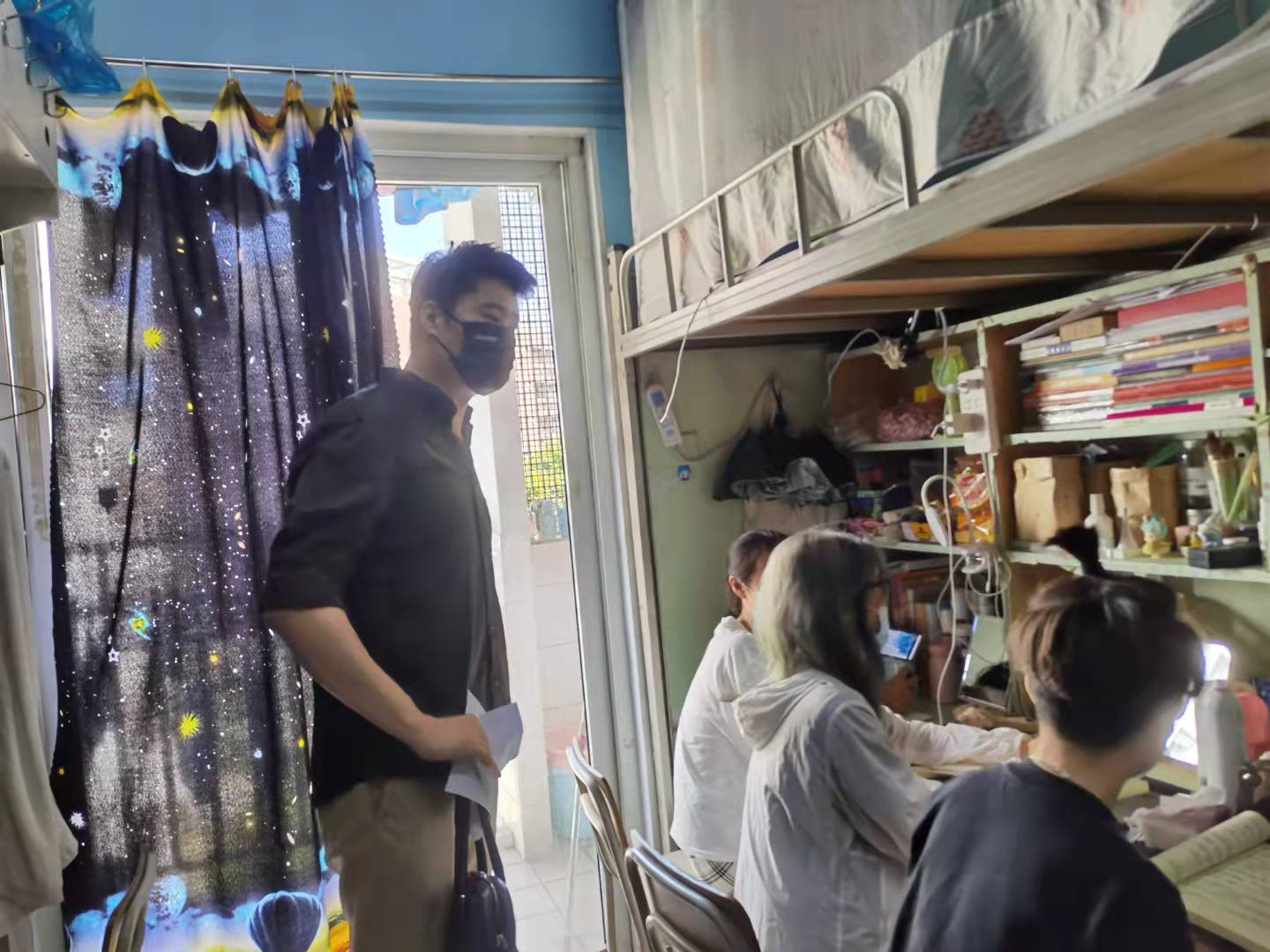 (系主任走进宿舍与学生交流)