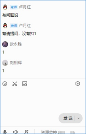 卢月红老师采用腾讯课堂直播授课,并在教学过程中利用学习通平台布置随堂练习,充分调动学生的积极性,还能根据学生随堂练习作答情况,在腾讯课堂实时评讲练习,加深学生对相关知识点的理解。在课后还创建了课程交流QQ群,方便学生答疑。