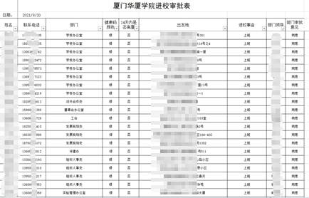 在近期厦门疫情防控最为关键的时期,学校疫情防控教职工健康监测专班承担着排查疫情区域旅居史教职工、疫情风险区密切接触者、教职工身体健康状况、教职工进出校园审批管理等各项工作,并整理形成全校400多名教职工的居住地、旅居史、接触史、核酸检测等信息台账,工作虽细小而繁琐,但却是保障全校教职工健康安全的重要基础。