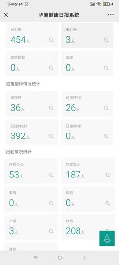 教职工健康监测工作专班由组织人事处部分人员和校工会部分委员和小组长组成,主要负责统筹做好疫情防控期间全体教职工健康信息的摸排、汇总、统计工作,自去年疫情发生以来,从未间断地执行做好疫情防控“日报告”、“零报告”,监督全校教职工健康状况线上打卡。