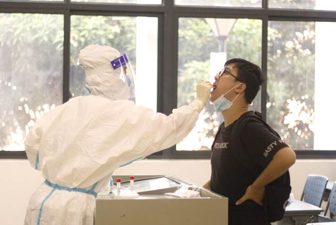 在全体师生的通力协作下,截至下午2点,学校完成本轮核酸采样和样本转运工作。