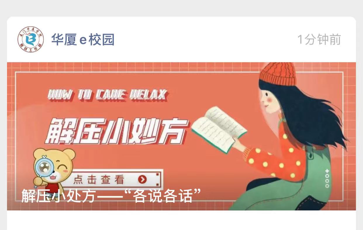 在疫情防控的特殊时期,华厦学院将继续秉持“以生为本”的理念,为学生提供温暖贴心的心理帮扶,持续扎实深入做好疫情防控期间心理健康教育工作,共同守护好我校青年学子的心理健康。