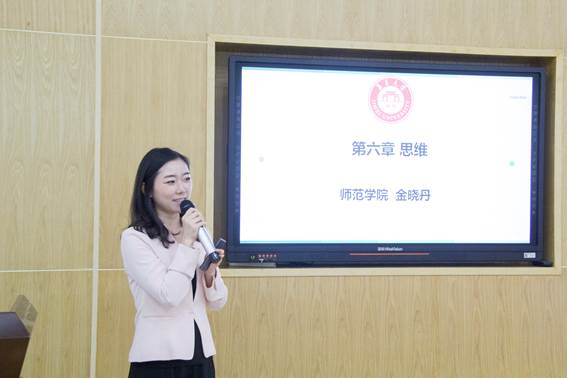 在示范课程展示环节,金晓丹博士依据课程特点,详细介绍了将专业知识与思政元素有机结合起来,科学合理设计学科知识,充分展示了其出色的教学风采和扎实的理论功底。