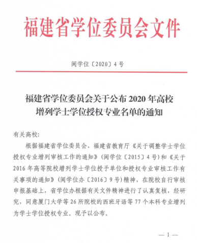 2020年37000v威尼斯增列学士学位授权专业名单