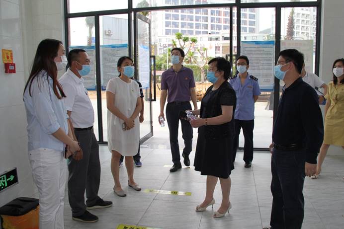 陈珍副局长一行实地检查了我校学生宿舍、公寓区食堂、隔离区、教学区、监控安全系统等重点区域,详细了解了我校复学准备和防疫措施等,并对学生管理、食堂卫生安全、消防安全等防控细节方面进行了指导。