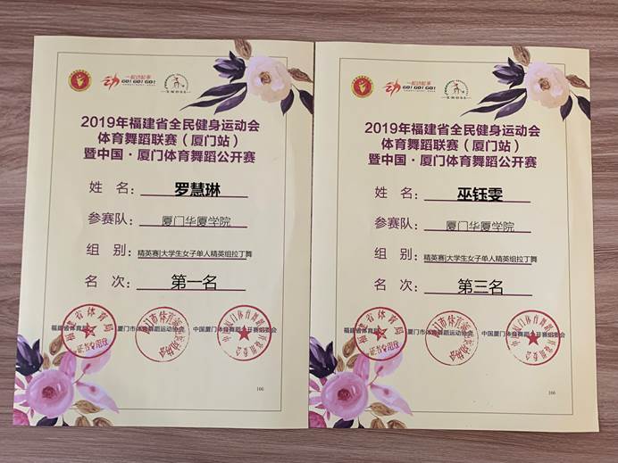 经过在厦多所高校的参赛选手的多轮竞争角逐,由我校范莉梅老师指导的交谊舞协会学生罗慧琳同学荣获大学生女子单人精英组拉丁舞第一名,巫钰雯同学在该项赛事中荣获第三名。
