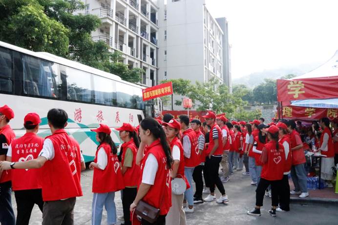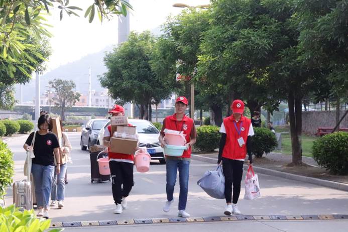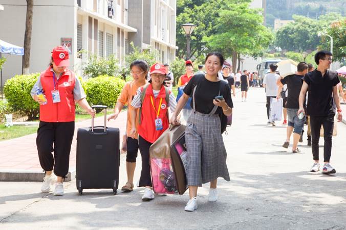 整个迎新工作始终秉持着“以生为本,服务学生”的理念,为新生提供优质的服务,如学校配有迎新专车,方便接送新生及家长;设立“绿色通道”,帮助家庭经济困难的学生;设立医疗站、免费饮水点、新生咨询站等,便利及保障新生报道。对于有特殊需要的学生,根据实际情况给予妥善的帮助,积极热情的服务温暖着新生和家长们。
