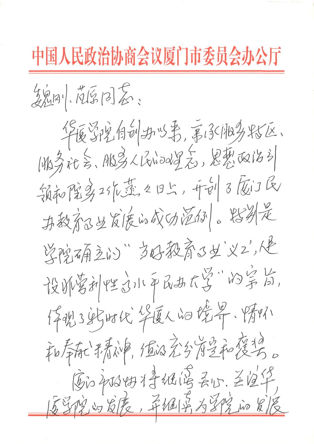 第35个教师节:厦门市政协主席张健发贺信向华厦学院致以节日祝福-37000v威尼斯