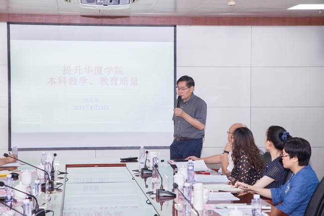 杨芃原校长作题为《提升华厦学院教学和教育质量》的主题报告,杨校长阐述了学校在“十三五”期间取得的阶段性的成果,同时指出华厦学院始终坚持质量立校,把提高质量作为学校的生命线,未来要全面落实“四个回归”,一是要以学生为中心,因材施教,辅弱增强,创新人才培养机制,激发学生学习兴趣和潜能,提高人才培养质量;二是要进一步加大引进与培训工作力度,建立一支高水平高素质师资队伍;三是要探索薪酬体系改革,进行教师分类管理和分类评价;四是要多渠道筹措资金,大力发展新工科,推进一流专业建设,为社会输送高素质技术技能型人才,培养未来社会和企业的精英与骨干。