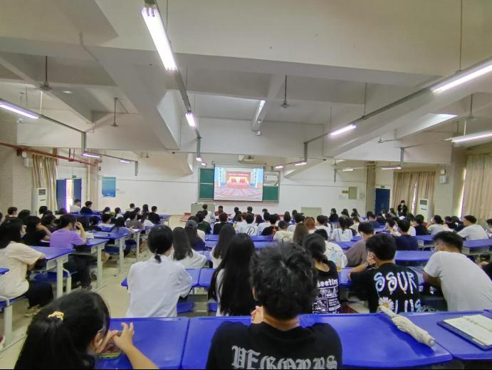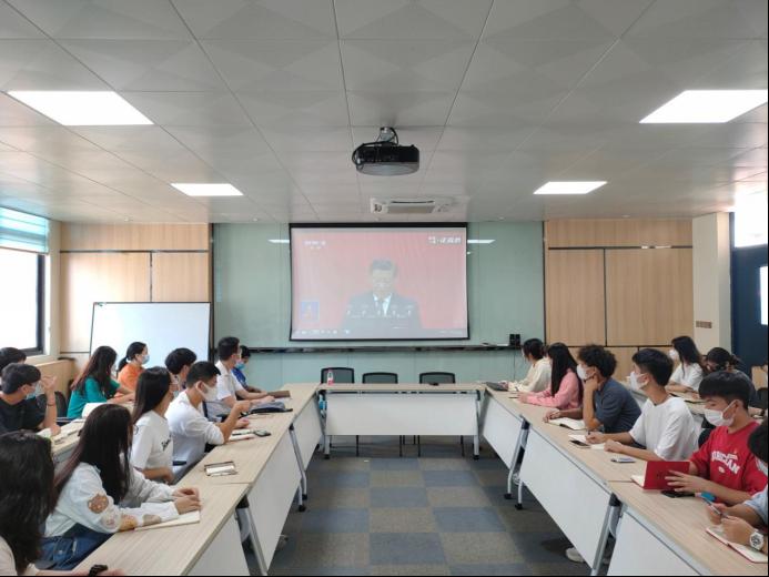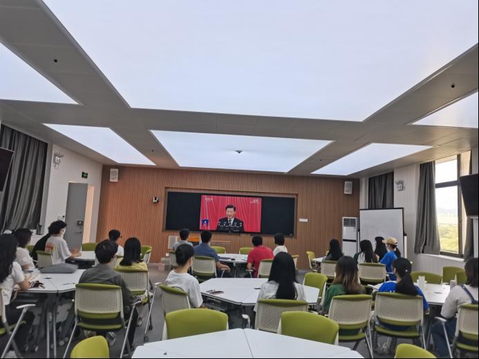 校团委组织各学生组织、团学骨干、青马班学员等在至善报告厅集中收看大会直播