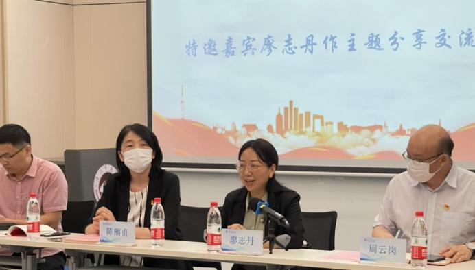 会议伊始,陈熙贞对廖志丹的来访表示热烈欢迎。随后由廖志丹做主题交流。她表示实施“一站式”学生社区综合管理模式建设,是深入学习宣传贯彻党的二十大精神,全面贯彻党的教育方针,落实立德树人根本任务的实际行动,是构建大思政格局,深化“三全育人”改革的重要体制机制创新。通过分享“扬才班”“甲方乙方党团活动”“院士进社区”“行政机关到社区兼职生活辅导员”“宿舍文化节”“男女生宿舍交换空间”等案例介绍厦门大学“一站式”学生社区建设情况,同时鼓励学生干部应主动在学生社区亮身份、做表率,发挥先锋模范作用,主动为营造良好的社区生活环境出一份力。