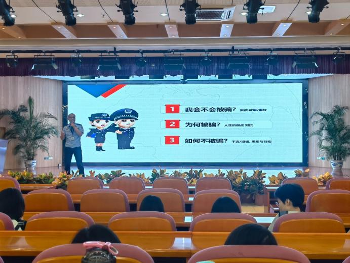 2023年9月14日-15日,信息中心联合保卫处、学生处开展了“全校师生线上线下同上一堂综合安全公开课”活动,活动特邀厦门市公安局集美学村派出所庞纪明警官主讲,在俊秀报告厅举办,通过线下宣讲和线上直播方式同步进行。庞警官通过现场讲解网络诈骗、校园安全等典型案例,阐述了师生如何去防止网络受骗和校园安全事故的发生,增加了我校师生防范网络诈骗、校园诈骗和校园综合安全意识。