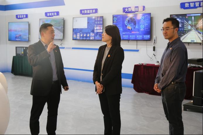 在罗普特科技集团股份有限公司战略发展中心负责人的带领下,调研组一行了解了该公司的党建成果、发展历程、组织架构、企业文化、技术创新和科技成果等,实地参观了智慧展厅,充分感受到了科技创新的强大力量和广阔发展前景。座谈中,校企双方就人才培养、产教融合、就业实习等展开充分交流,并就罗普特旗下电商新版块用人需求问题进行深入沟通。
