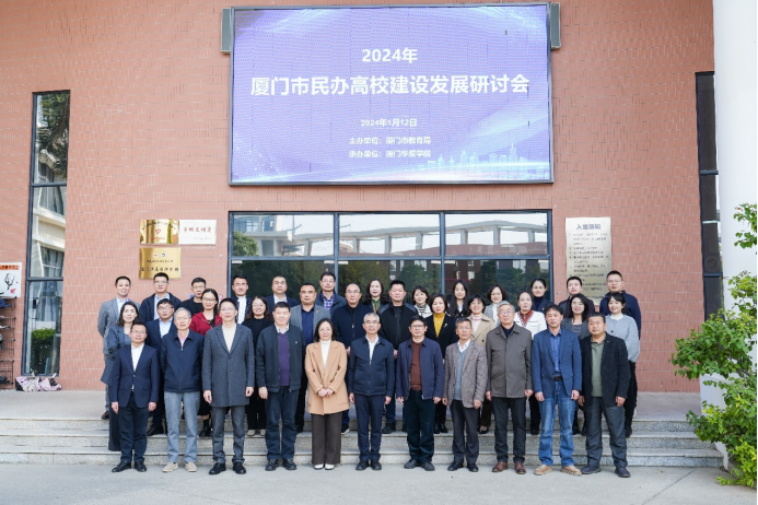 为深入学习贯彻党的二十大精神,进一步促进厦门民办高校建设发展,2024年1月12日,由厦门市教育局主办、我校承办的“2024年厦门市民办高校建设发展研讨会”在我校校史馆望怀厅隆重举行。出席会议的有厦门市教育局副局长洪军、市教育局高教职教处、人事处、财务处、发展规划处、宣教处、组织处等相关处室人员,以及集美大学诚毅学院、厦门工学院、厦门兴才职业技术学院、厦门南洋职业学院、厦门华天涉外职业技术学院、厦门软件职业技术学院、厦门东海职业技术学院、厦门演艺职业学院、厦门安防科技职业学院等10所在厦民办高校校长及相关处室负责人,我校校长谢增鸿、常务副校长陈民伟、副校长唐维萍、副校长张宏及主要部门负责人参加了会议。会议由厦门市教育局高教职教处处长陈哲新主持。
