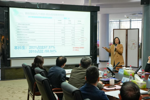 下午会议邀请厦门大学教育研究院、闽台高教研究中心主任李国强副教授作了主题为《民办高等教育高质量发展的两项历史性任务》的报告。李教授回顾了我国民办高等教育发展历程,阐述了2035民办高等教育发展的宏观背景,提出应以“民办高校分类管理改革”“专业建设、教学改革”为抓手,不断促进民办高等教育治理现代化和提质创优。专题报告后各高校领导结合新时代民办高校办学发展所面临的机遇与挑战,就如何履行好新时代赋予民办高校的新使命,依次作了发言,研究探讨推动民办高校发展的新思路、新路径。