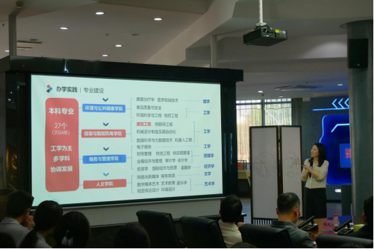 交流会首先在我校校史馆望怀厅举行。厦门信息学校招生与就业科科长江榕霞指出,此次中本贯通培养试点合作对于两所学校是一次很好的交流机会,也是一次技能和学术的碰撞,双方将持续为学生提供更加优质、全面的教育服务。她提出,技能与知识将在2024级计算机网络技术专业新生未来七年的学习生活中相伴,希望各位新生能够把握好机遇,快速适应学习生活,以优异的成绩通过转段考试进入本科院校。