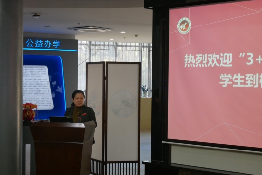 唐维萍副校长代表学校对“3+4”试点班同学们的加入表示热烈欢迎,并详细介绍了学校的发展历史、办学实践、办学特色、校园生活等方面的内容。她指出,新起点孕育新希望、新征程铸就新成就,“3+4”项目的实施,打通中职直通本科的“断点”,为学生提供多样化成长成才渠道,未来两所学校将携手共赴七年之约。会上,唐副校长对试点班新生提出三点希望:一要勤奋学习,扎实掌握专业知识,扩充知识面;二要精进技能,不断提升自己的综合素质与核心竞争力;三要强健体魄,丰富经历,开阔眼界。