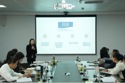 就业指导中心副主任陈燕从2024届毕业生就业情况、2025届毕业就业意向调研情况、就业工作部署、就业育人体系建设情况等四个方面做工作汇报。