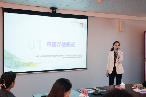 会上,规划与质量管理处处长汪婷婷作专题汇报,全面对照审核评估指标体系与学校现状,系统解读新一轮评估具体要求及指标内涵,并对比分析我校量化指标数据。汪处长着重指出办学质量提升方向,包括办学定位明晰度、师资队伍结构优化等重点领域,同时明确校院两级及教师在评估周期内的具体任务分工。