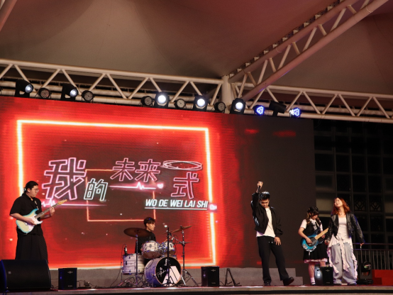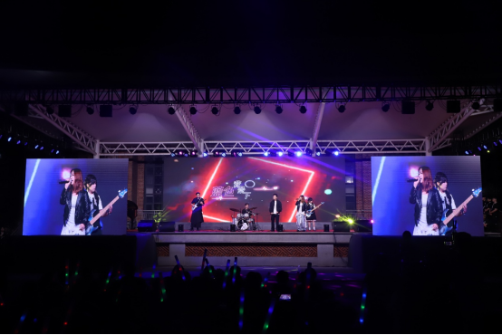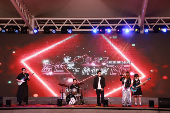 晚会在逐海乐队的歌声中拉开帷幕。《河流》《我的未来式》的曲风充满活力又满载着憧憬,唱响了大学生活的序章。