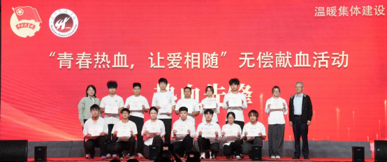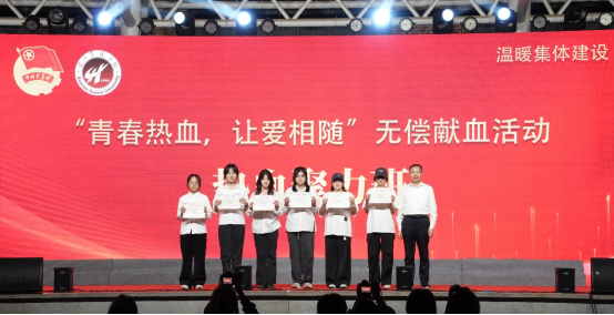 校领导为2025-2026学年第一学期温暖集体建设系列活动——“青春热血,让爱相随”无偿献血活动中涌现出的先进个人及集体颁奖,正是因为他们用青春热血为生命续航,用行动诠释责任与担当,才让我们看到,平凡之举亦可成就大爱。