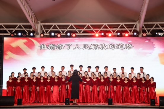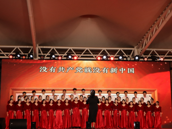 合唱《没有共产党就没有新中国》,学子们身着整齐服装,以激昂嘹亮的歌声回望百年征程,旋律铿锵有力、情感真挚饱满,既展现了青年一代对党和国家的赤诚热爱,也奏响了新时代青年砥砺奋进的序曲。