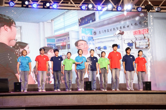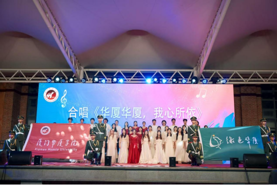 晚会尾声,全体师生共同唱响校歌《华厦华厦,我心所依》,校旗和绿色华厦旗缓缓展开,歌声嘹亮、气势恢宏。熟悉的旋律回荡在校园上空,凝聚起全校师生同心筑梦的强大合力。