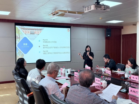 会上,信息与智能机电学院院长陈明明重点围绕通信工程专业的工程教育认证工作,从认证理念的导入、培养方案的修订、毕业要求指标点的分解与落实,到持续改进机制的建设等方面,系统汇报了目前的进展、阶段性成效以及面临的核心挑战。