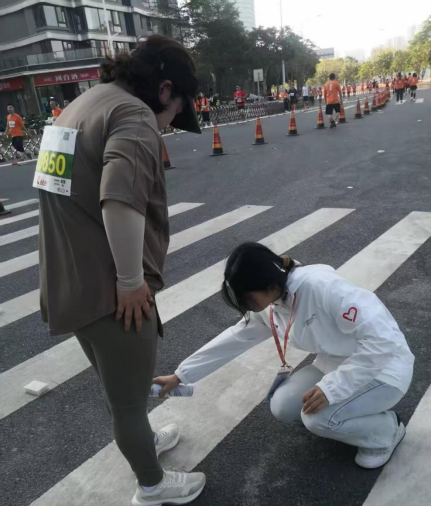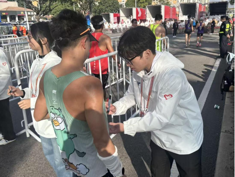 检录环节,我严格按照赛事规程核对选手信息、引导有序入场,近距离见证了专业运动员赛前沉稳专注的状态,深刻体会到赛事保障工作严谨细致的重要性。而在终点线旁,为冲线选手准备奖牌时,他们脸上的汗水与笑容交织,一声声真诚的“谢谢”,让我真切感受到马拉松运动的热血与温情。此次志愿经历,不仅是一次服务他人的实践,更让我懂得责任与坚守的意义,也让青春在助力奔跑的过程中绽放出别样光彩。