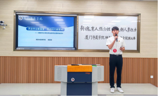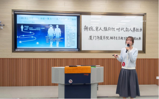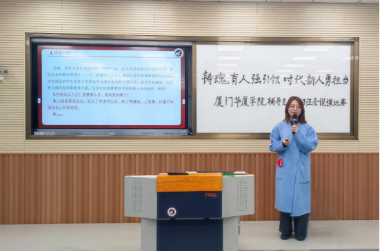 校党委书记徐志怀作总结讲话。他表示学校党委历来高度重视辅导员队伍建设和主题班会课建设,对本次比赛的组织与辅导员队伍的专业化成长表示肯定,并就进一步加强思想政治育人工作提出三点要求:一是要坚持系统推进主题班会课程建设。由学校层面统筹规划学期主导性内容,各二级学院结合实际细化实施方案,建立健全与辅导员职称评聘、课程认定相衔接的长效机制,强化制度保障;二是要搭建主题班会公开课、示范课等多元化交流平台,营造“比、学、赶、超、帮”的良好氛围。推动第一、第二、第三课堂有机融合,联动社会资源与行业专家力量,突出学生主体地位,增强班会课的思想性、针对性与感染力;三是要注重实践经验的总结提升,凝练经验,形成可复制、可推广的典型成果,以课题研究、论文竞赛为抓手,深入探索辅导员思想政治教育规律,着力打造具有华厦特色的思政育人品牌。同时鼓励辅导员积极参与各级各类学术交流与研讨活动,进一步提升辅导员的专业素养,展示育人创新成果。