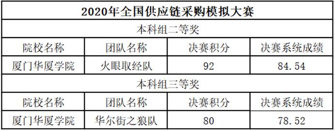 我校学子在全国供应链采购模拟大赛决赛成绩