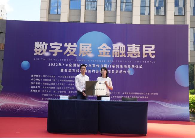 2022年7月8日上午,校党委副书记、学生处处长陈熙贞,商务与管理学院副院长郭文茂,金融与投资管理系副主任毛月秋与金融专业教师徐艳娴受邀参加由厦门市科技局、中共湖里区委统战部共同指导,白鸽在线(厦门)网络科技有限公司、厦门市科技经济促进会联合主办的“7.8全国保险公众宣传日”厦门系列活动启动仪式暨白鸽在线战略签约合作及项目启动仪式,共同打造一场以“金融惠民数字发展”的保险宣传盛宴。会上,校党委副书记陈熙贞代表学校与白鸽在线(厦门)网络科技有限公司签订校企合作协议,并举行了“产学研实习实践基地”授牌仪式,同时与企业沟通交流,“访企拓岗”开辟就业岗位,为毕业生就业牵线搭桥。