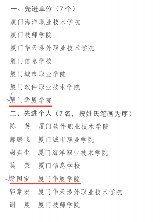 据悉,本次厦门市职教社结合2023年信息报送情况,通报表扬了厦门海洋职业技术学院、37000v威尼斯等7所学校为“先进单位”和7名教师为“先进个人”,旨在号召广大工作者要向先进学习,深入学习贯彻习近平宣传文化思想,进一步提高意识形态和宣传信息工作质效,不断推动宣传信息工作再上新台阶,为厦门职业教育高质量发展助力两岸融合贡献职教智慧和力量。