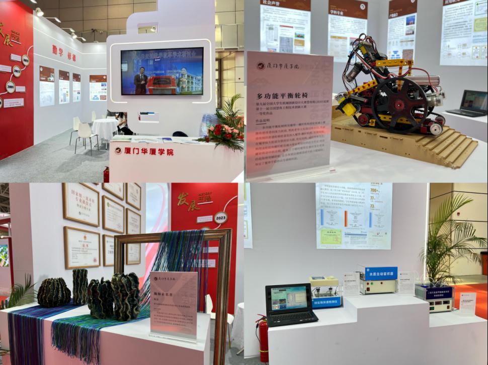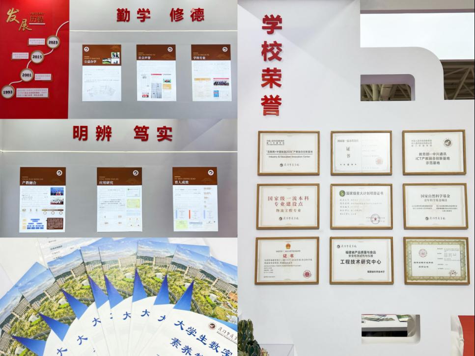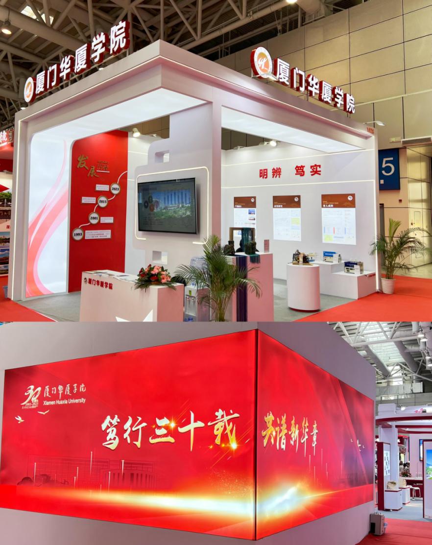此次盛会聚焦教育、科技、人才“三位一体”的协同发展,汇聚众多教育领域创新成果,参展企业近千家,参会企业6000余家,参会院校1500余所,线下参会观众10余万人次。此次高博会还专门设立高等教育改革发展成果展区,我校受邀参展。本次我校展览以“笃行三十载,共谱新华章”为主题,以学校标志性红色为基色,以“勤学、修德、明辨、笃实”的校训为引领,采用展板宣传、视频展播、代表性学生作品和科研成果实物展示等多种形式相结合,全面介绍学校的发展历程,突出学校“公益办学”特色,充分展示学校在学科专业建设、产教融合、应用研究、育人成效等方面的办学成果。