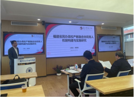 4月7日,福建省高等教育研究院于厦门大学黄宜弘楼举行了2023年“福建省高等教育改革与研究项目”重大重点项目负责人培训会和开题报告会。课题负责人陈民伟教授以我校产教融合协同育人的实践成果为着眼点,从福建省民办本科院校的发展现实出发,针对民办应用型本科高校产教融合发展过程中普遍存在的“合而不深”问题,剖析民办高校与“政校行企”之间的博弈关系,试图理清其内在运行机制,提出相应的优化路径,以期实现民办高校与协作企业的同频发展。