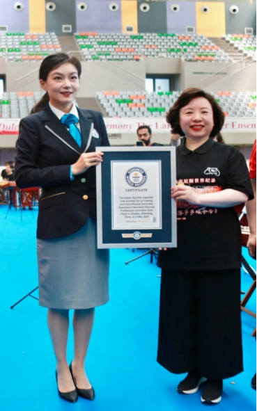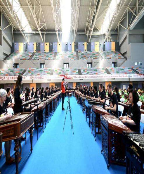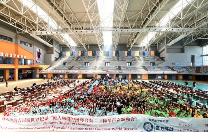 本次比赛我校外聘教师王荟和人文学院音乐教育系学生柳艺惠、吴影还成功挑战了扬琴吉尼斯记录!2024年5月3日,来自12个国家和地区的425位扬琴艺术家、教育家、专业演奏者及青少年儿童扬琴爱好者,在青岛即墨体育馆一同奏响由中国著名作曲家、上海音乐学院刘灏教授特别创作的《扬琴声声颂和合》,由中央音乐学院青年指挥家马帅执棒,创造“最大规模的扬琴合奏”吉尼斯世界纪录,挑战者的年龄从5岁到79岁,分别来自伊朗、印度、捷克、斯洛伐克、德国、马来西亚、新加坡、韩国、日本、中国大陆及港、澳、台地区。此次成功挑战国际吉尼斯记录不仅推动了我校音乐艺术学科人才培养发展与专业课程体系全面建设,更是通过扬琴这一艺术载体为深化构建和服务人类音乐命运共同体贡献我校积极的力量!