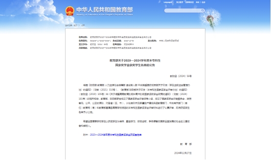 《2023—2024学年度本专科生国家奖学金获奖学生名单》