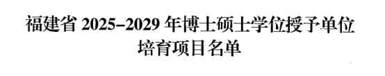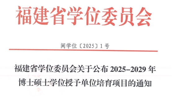 近日,福建省学位委员会下发《关于公布2025-2029年博士硕士学位授予单位培育项目的通知》(闽学位〔2025〕1号),我校入选硕士学位授予单位培育项目名单,学校生物与医药、工商管理、音乐三个学科,获批硕士学位授予单位培育学科。