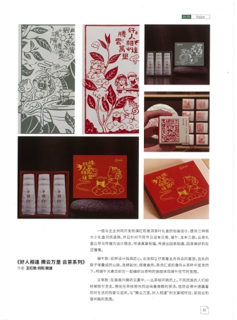在本次选登的作品中,校企合作开发项目产品《好人相逢·腾云万里 云茶系列》是一组滇红、普洱茶礼盒,由校企合作单位设计师与我校视觉传达设计专业毕业生何阳、数字媒体艺术专业毕业生赖健共同创作完成。包含三种类型礼盒,并且针对不同时段设有日常、端午、龙年限定三款。在图形设计上以云南非物质遗产甲马传福为来源,传递真挚祝福,表达出因茶相遇,因茶美好的生活憧憬。