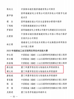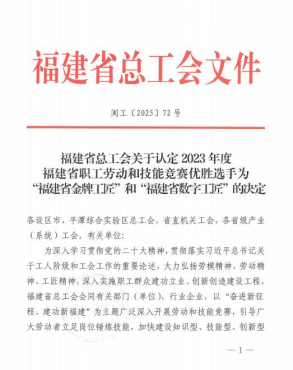 近日,福建省总工会发布了《关于认定2023年度福建省职工劳动和技能竞赛优胜选手为“福建省金牌工匠”和“福建省数字工匠”的决定》(闽工〔2025〕72号),我校信息与智能机电学院副院长蔡志猛、教师谭文奇凭借在2023年福建省工业互联网应用技术技能大赛中的优异表现,被授予“福建省数字工匠”荣誉称号。